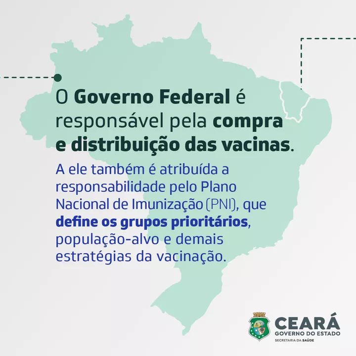 Campanha Nacional de Vacinação Contra a Covid-19 tem gerado muitas dúvidas. Entre as mais comuns está a responsabilidade dos governos federal, estadual e municipal no processo de imunização da população. Por isso, a Secretaria da Saúde do Ceará (Sesa) diferencia o que cabe a cada esfera.