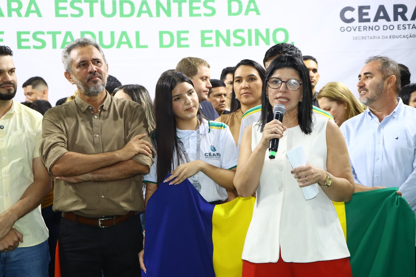 Secretária da Educação, Jucineide Fernandes reafirmou o compromisso do governador Elmano com o ensino cearense. “É uma alegria estar aqui para trazer boas notícias para a educação. Todos esses investimentos que estamos fazendo em prol do desenvolvimento da educação é para que a nossa educação continue sendo referência para o Brasil. O recado que quero deixar é que seguiremos trabalhando pela nossa educação e por todos vocês”, comentou.