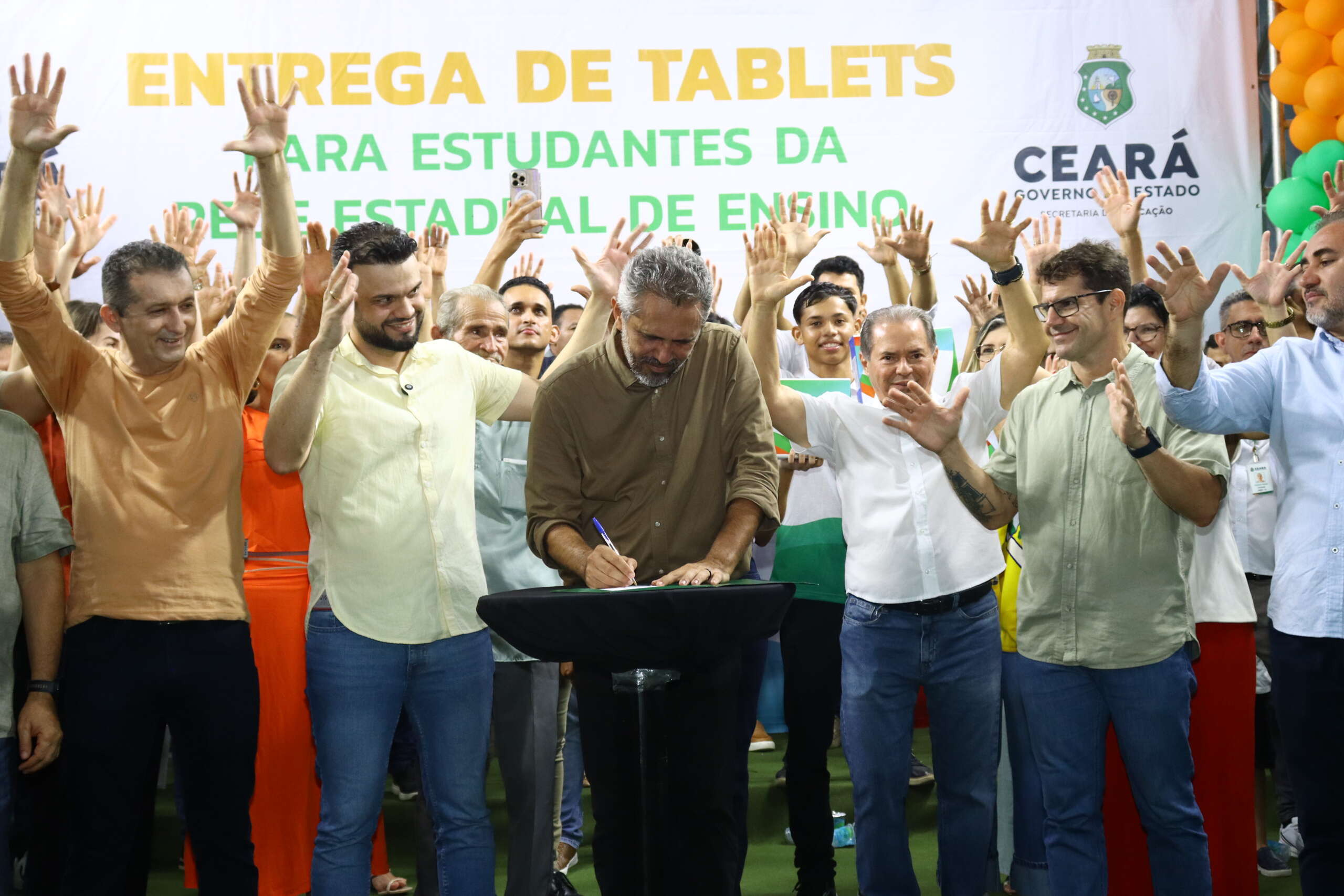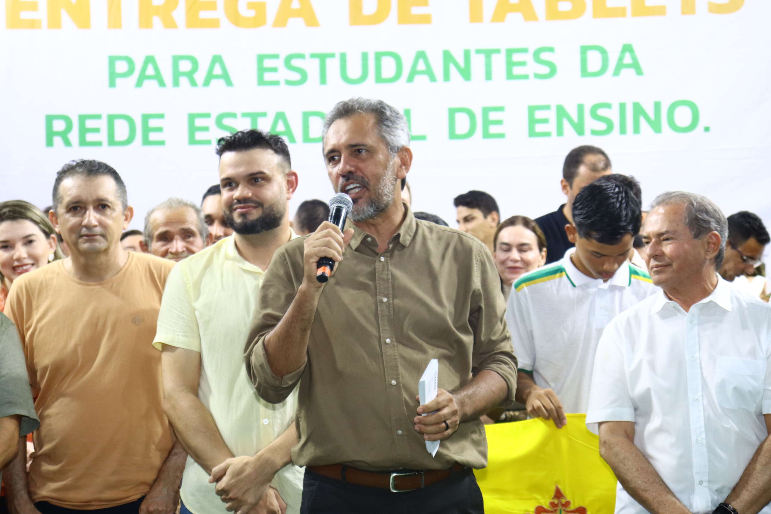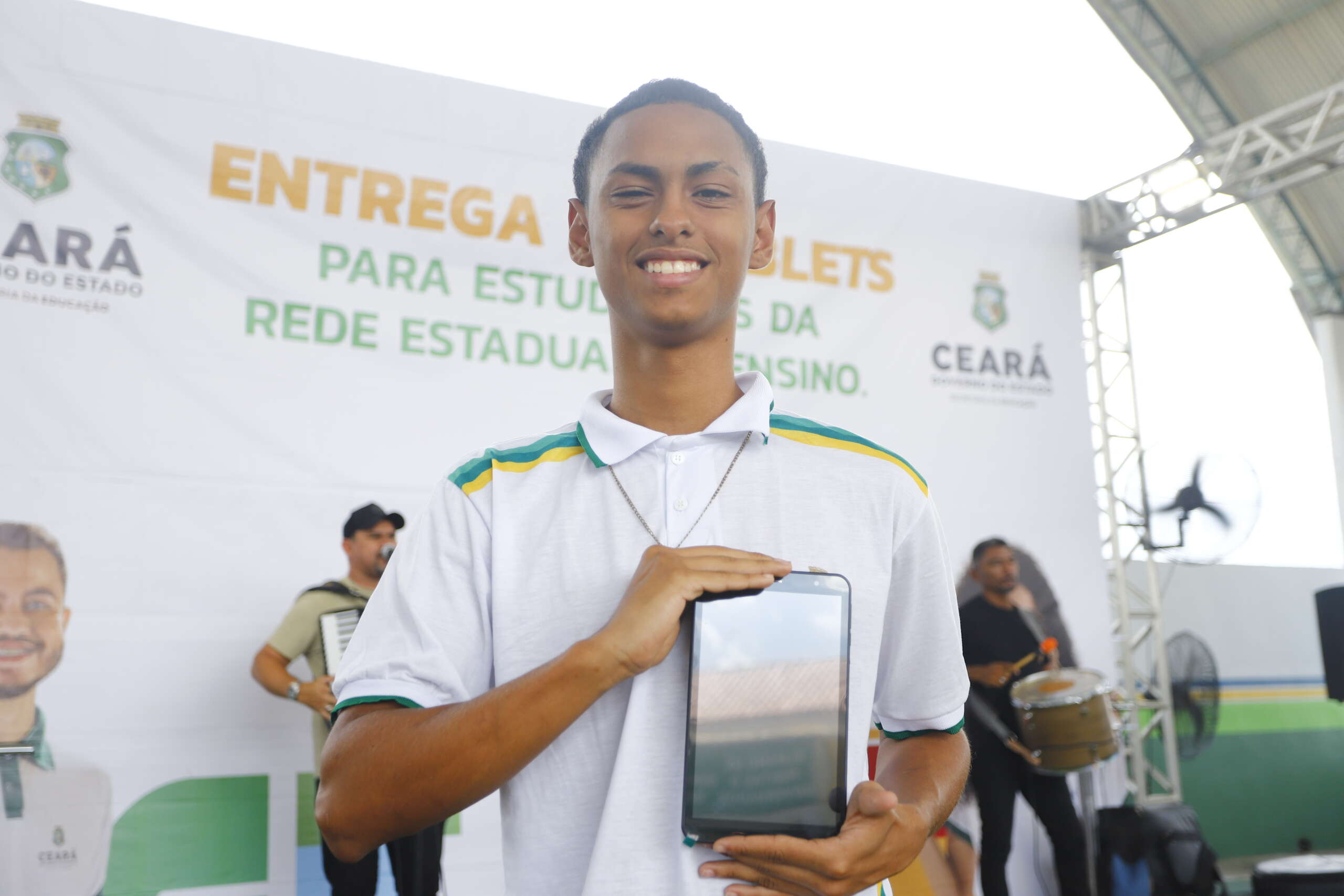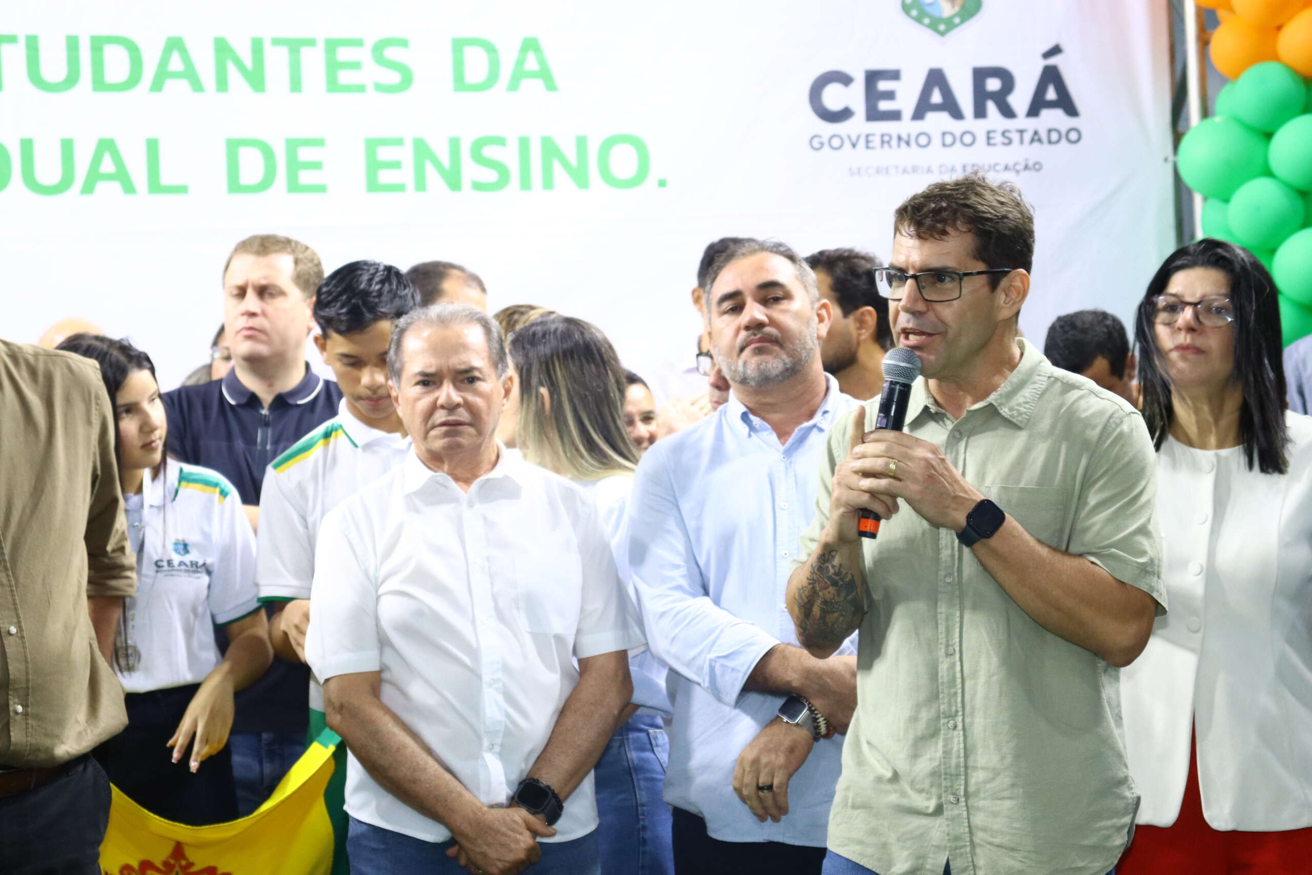 “Tenho muito orgulho dos nossos estudantes. Se eu, neto de um agricultor que nunca estudou, filho de um agricultor que só fez até o 4º primário, virei governador do Ceará, vocês vão ser o que vocês quiserem. Reparem, se vocês encontrarem alguém de uma família mais rica, o filho tem um computador. Se o filho do rico tem, o filho do povo também vai ter um tablet com chip de conectividade”, destacou o governador Elmano de Freitas.