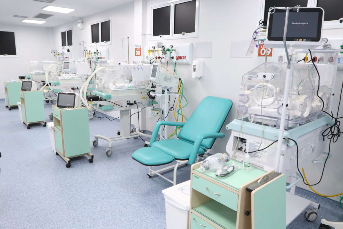 A estrutura conta com incubadoras, respiradores, monitores multiparâmetros, posto de enfermagem, mobiliário e estrutura adequada para assistência intensiva neonatal.