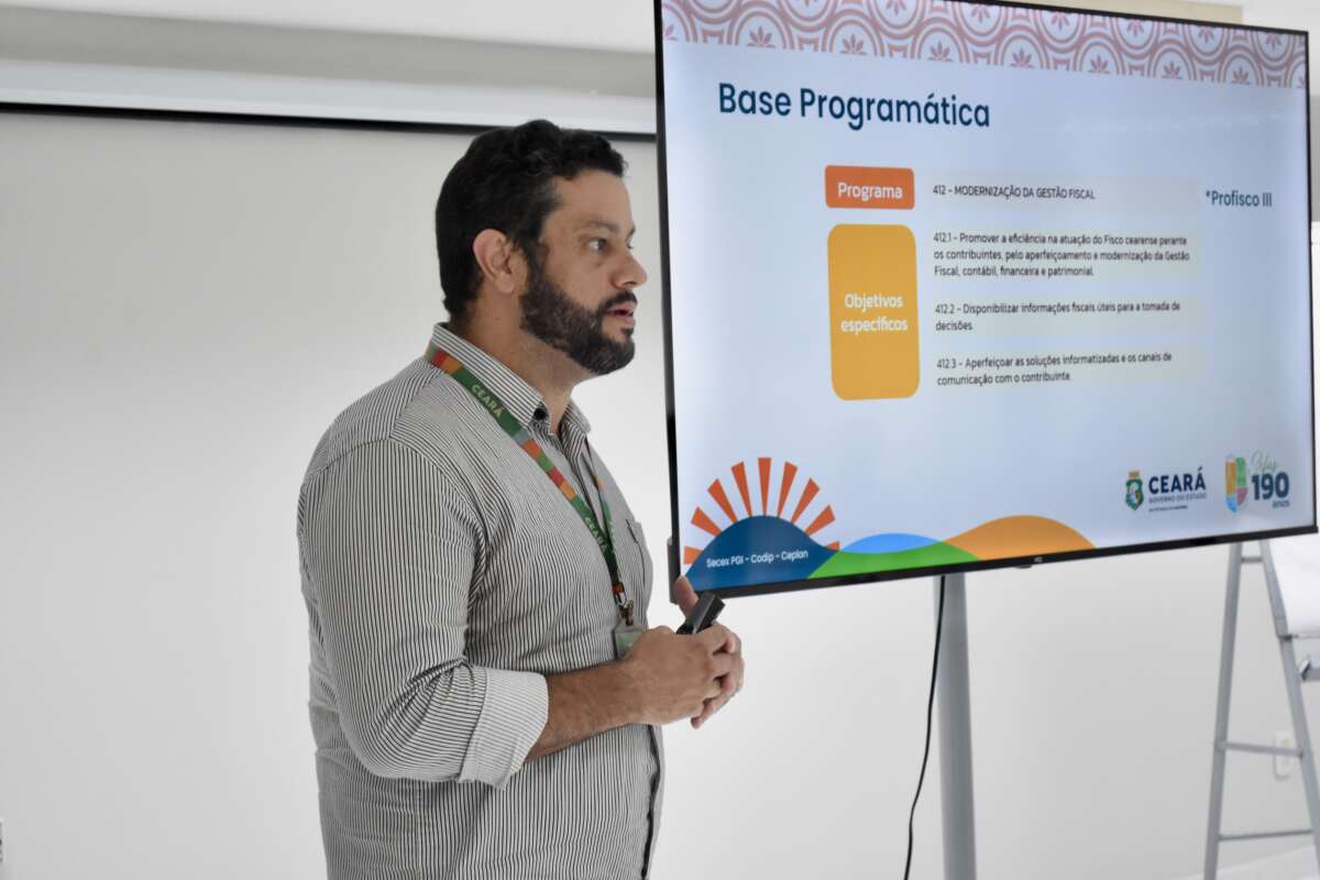 Sobre o programa 412 – “Modernização da Gestão Fiscal”, o colaborador Felipe Alves, lotado na Codip, explicou que ele está vinculado diretamente a todas as entregas do Programa de Modernização da Gestão Fiscal no Brasil (Profisco). “O programa 412 tem três objetivos específicos, sendo o primeiro promover a eficiência na atuação do Fisco cearense perante os contribuintes, pelo aperfeiçoamento e modernização da gestão fiscal, contábil, financeira e patrimonial. Há o segundo objetivo específico, que é disponibilizar informações fiscais úteis para a tomada de decisões, e o terceiro, que é aperfeiçoar as soluções informatizadas e os canais de comunicação com o contribuinte”.